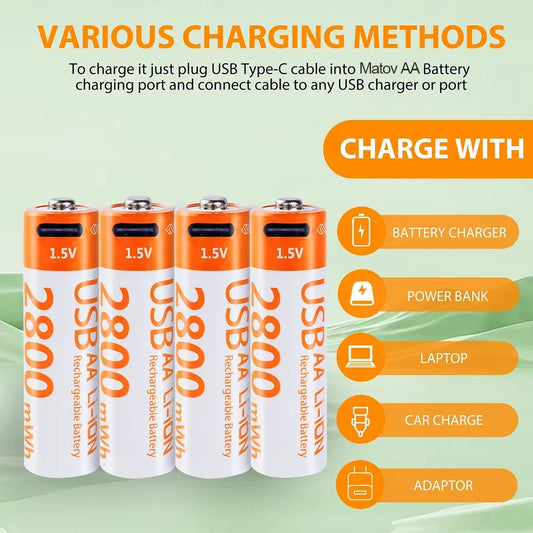 1.5V AAA 1100mWh USB Type-C Rechargeable Lithium Battery-4PCS/SET