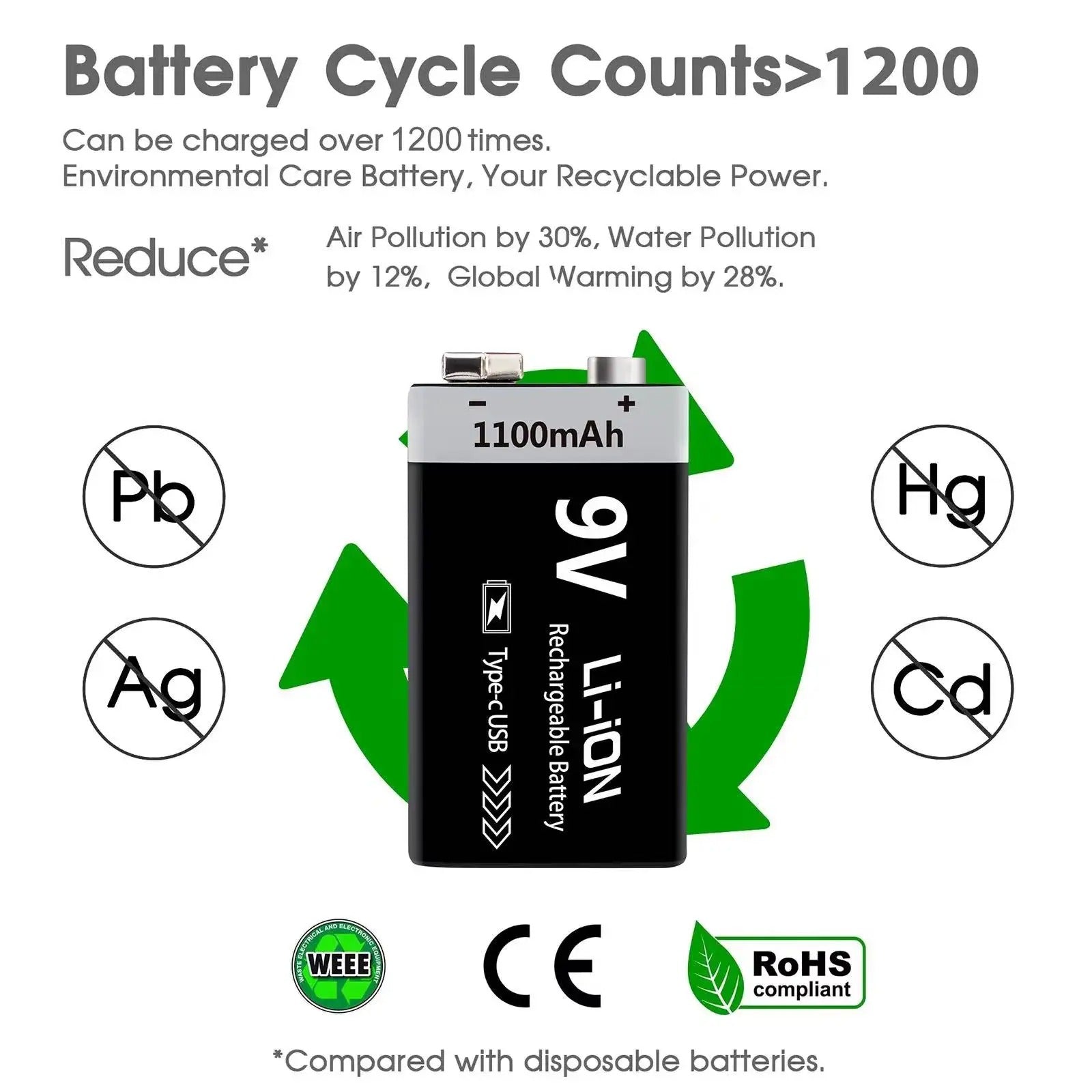 9V Rechargeable Li-ion Battery 9V 1100mWh-4PCS/SET