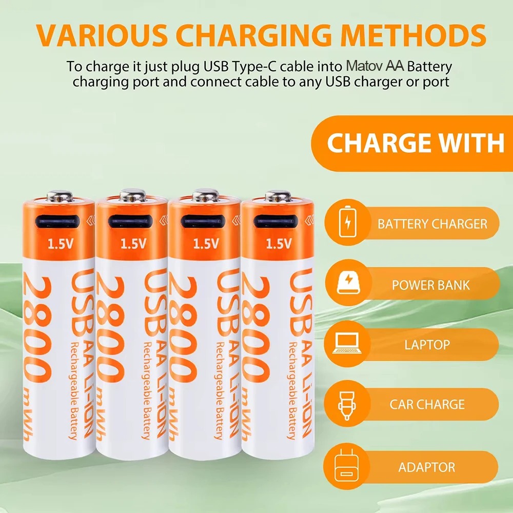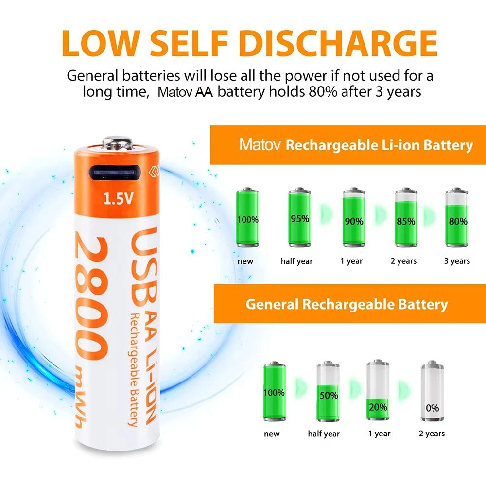 Multiple Battery Protection: These rechargeable lithium aa batteries feature a built-in smart security chip that protects the battery against explosion.